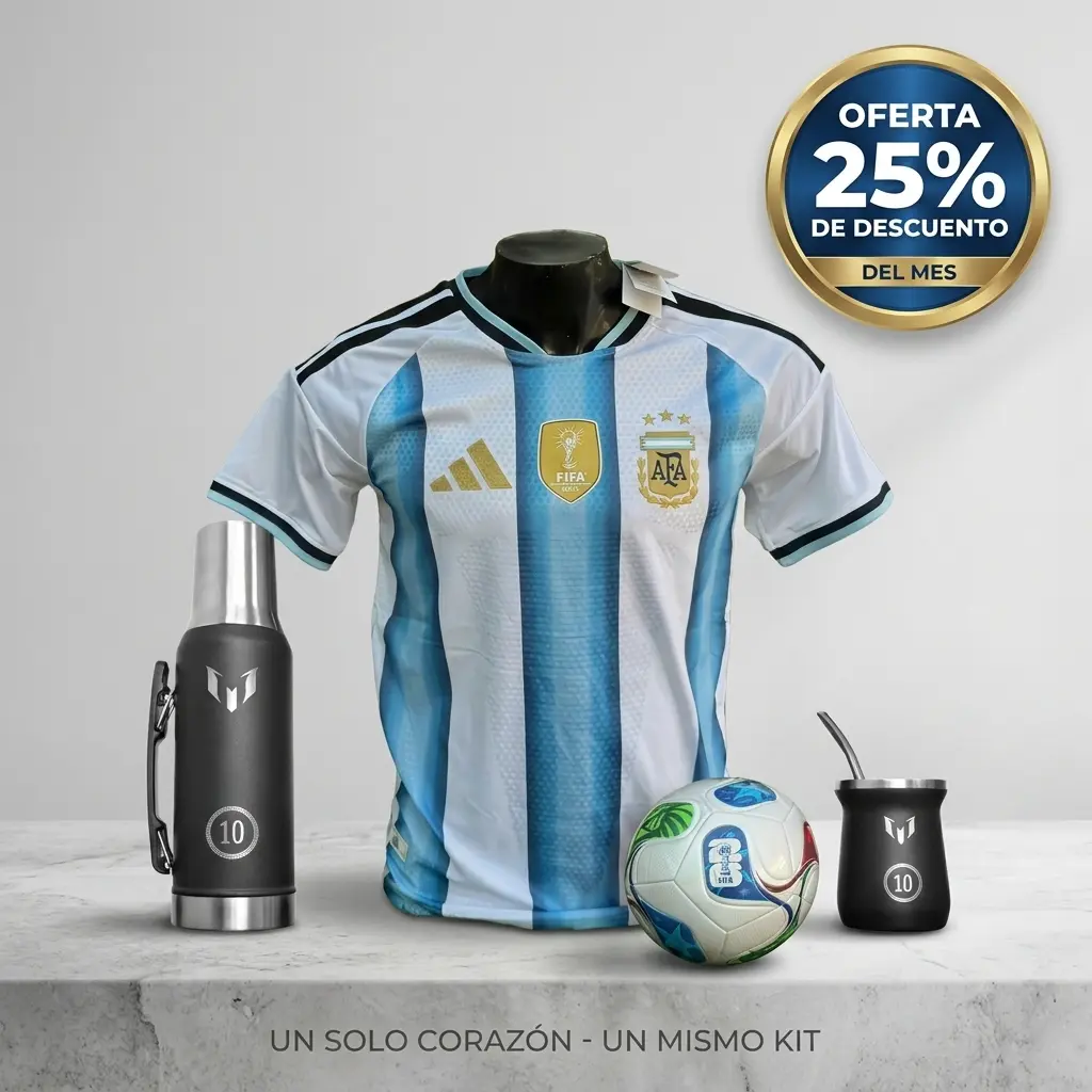 El Combo Modo Mundial, una propuesta pensada para quienes sienten los colores de Argentina en cada partido, en cada encuentro y en cada momento del día. Este combo reúne estilo, funcionalidad y tradición en un solo kit, ideal para acompañarte durante el Mundial y mucho más.